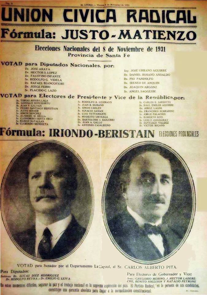 Nacional Electoral de la Unión Cívica Radical pro candidatura Justo-Matienzo, 1931.